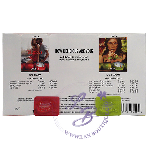 DKNY Be Delicious & Red Delicious perfume by Donna Karan for women 2 pieces small miniature sample tablets set contains the following: